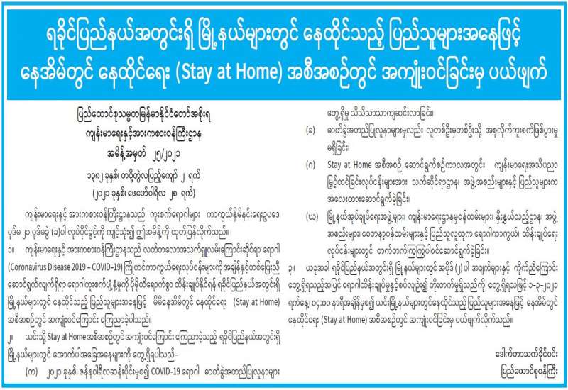 နိုင်ငံတော်အစိုးရအနေဖြင့် နိုင်ငံတော်တည်ငြိမ်လုံခြုံအေးချမ်းသာယာရေးအတွက် ကြိုးပမ်း ဆောင်ရွက် လျက်ရှိရာတွင် တစ်ဦးတစ်ယောက်၊ တစ်ပါတီအဖွဲ့အစည်းအတွက် ဦးတည်ရည်မှန်းချက် ထားကာ နိုင်ငံတော်အား နည်းမျိုးစုံအသုံးပြုဆန့်ကျင်လှုပ်ရှားနေသူများကို နိုင်ငံတော်နှင့် ပြည်သူ လူထုအကျိုးစီးပွားအတွက် တရားဥပဒေစိုးမိုးရေးလုပ်ငန်းများကို ထိထိရောက်ရောက် ဆောင်ရွက်နိုင်ရေး လုံခြုံရေးတပ်ဖွဲ့ဝင်များအနေဖြင့် ဆက်လက်ကြိုးပမ်း ဆောင်ရွက်လျက်ရှိပါသည်။