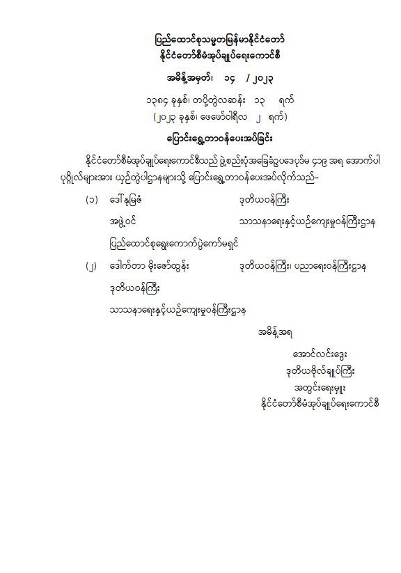 ဝန်ကြီးဌာန ကြေညာချက်များ