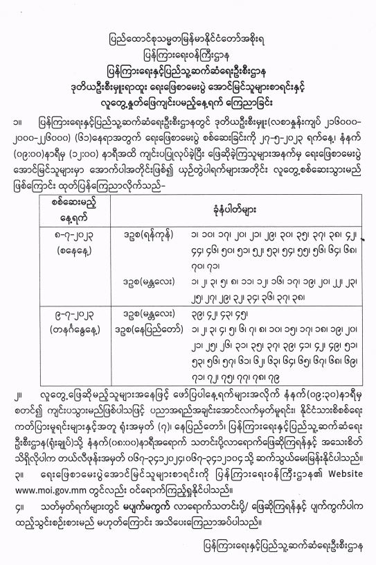 ပြန်ကြားရေးနှင့်ပြည်သူ့ဆက်ဆံရေးဦးစီးဌာန ဒုတိယဦးစီးမှူးရာထူး ရေးဖြေစာမေးပွဲ အောင်မြင်သူများစာရင်းနှင့် လူတွေ့နှုတ်ဖြေကျင်းပမည့်နေ့ရက် ကြေညာခြင်း