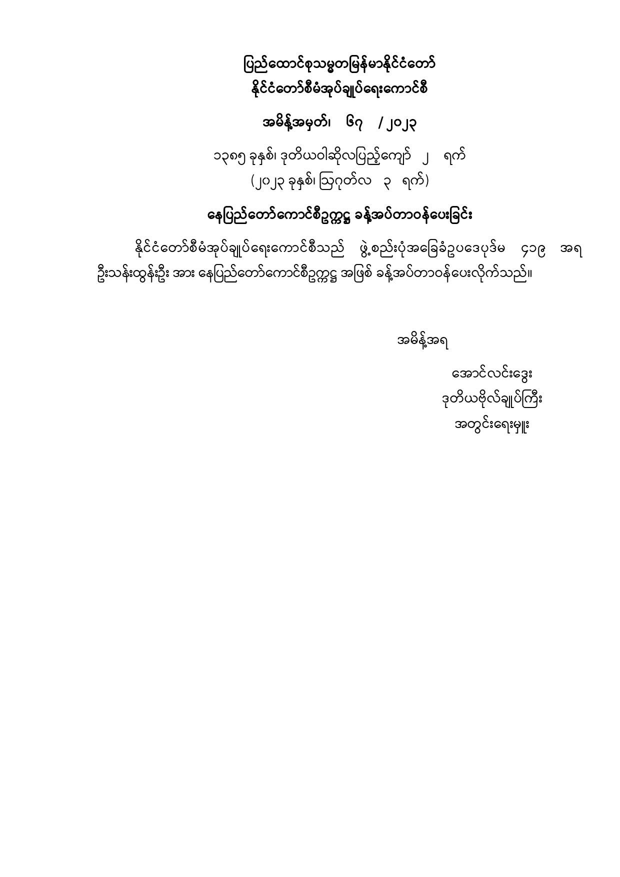 အမိန့်အမှတ်၊ ၆၇ / ၂၀၂၃