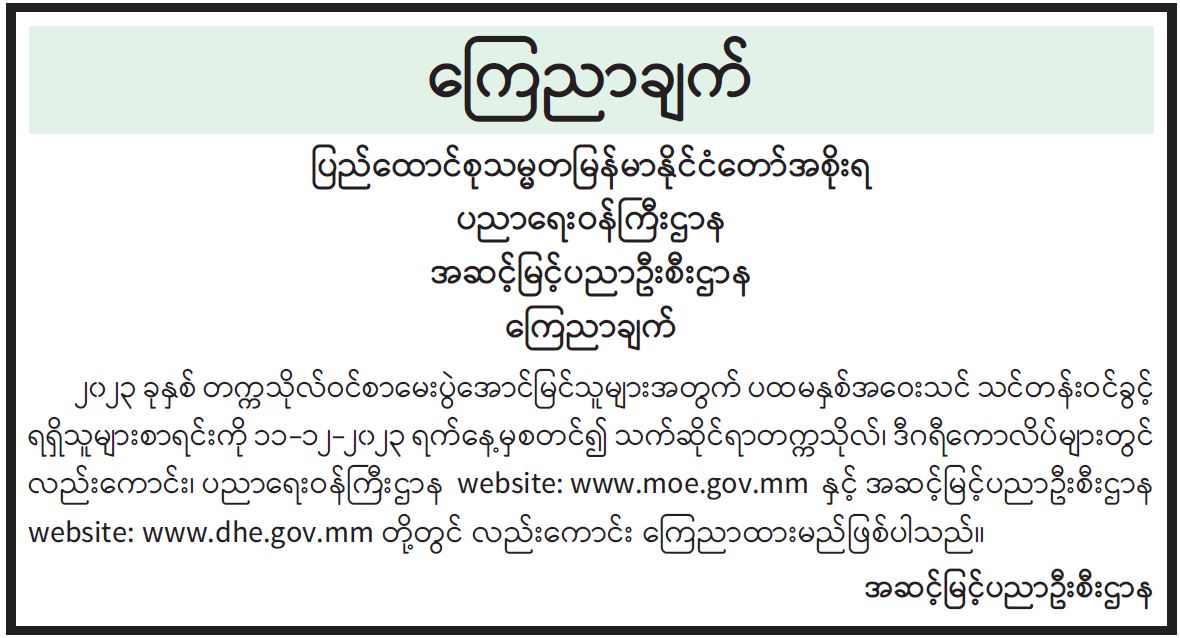 ဝန်ကြီးဌာန ကြေညာချက်များ
