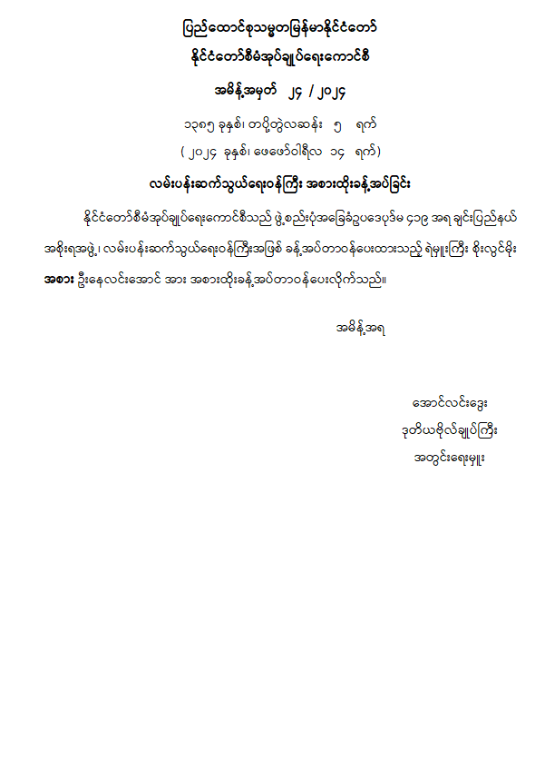 လမ်းပန်းဆက်သွယ်ရေးဝန်ကြီး အစားထိုးခန့်အပ်ခြင်း