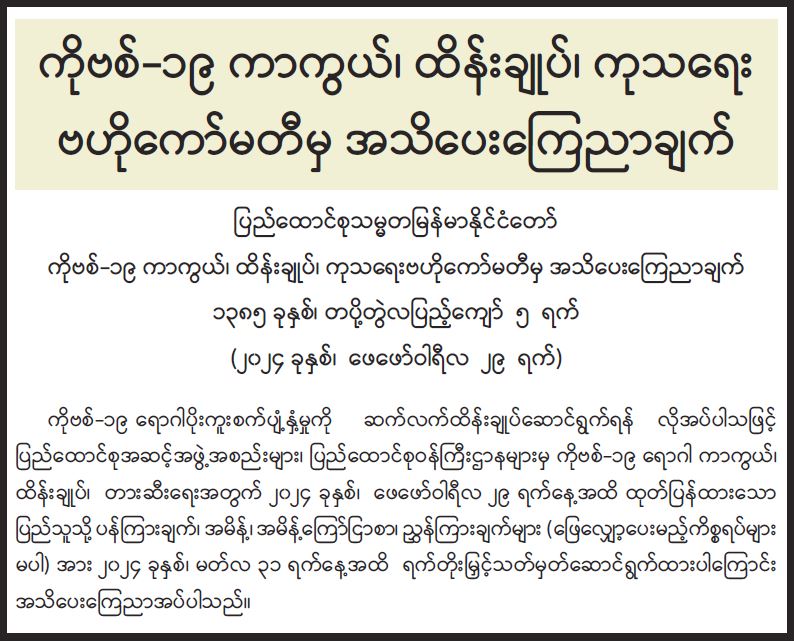 ကိုဗစ်-၁၉ ကာကွယ်၊ ထိန်းချုပ်၊ ကုသရေးဗဟိုကော်မတီမှ အသိပေးကြေညာချက်