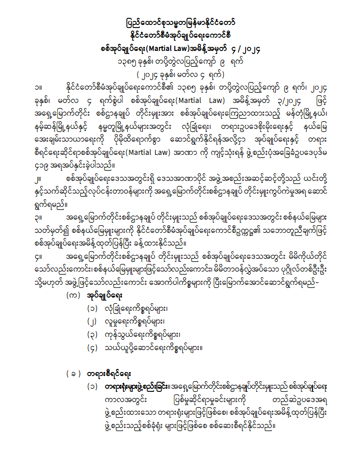 ပြည်ထောင်စုသမ္မတမြန်မာနိုင်ငံတော် နိုင်ငံတော်စီမံအုပ်ချုပ်ရေးကောင်စီစစ်အုပ်ချုပ်ရေး (Martial Law) အမိန့်အမှတ် ၄ / ၂၀၂၄ 03/05/2024