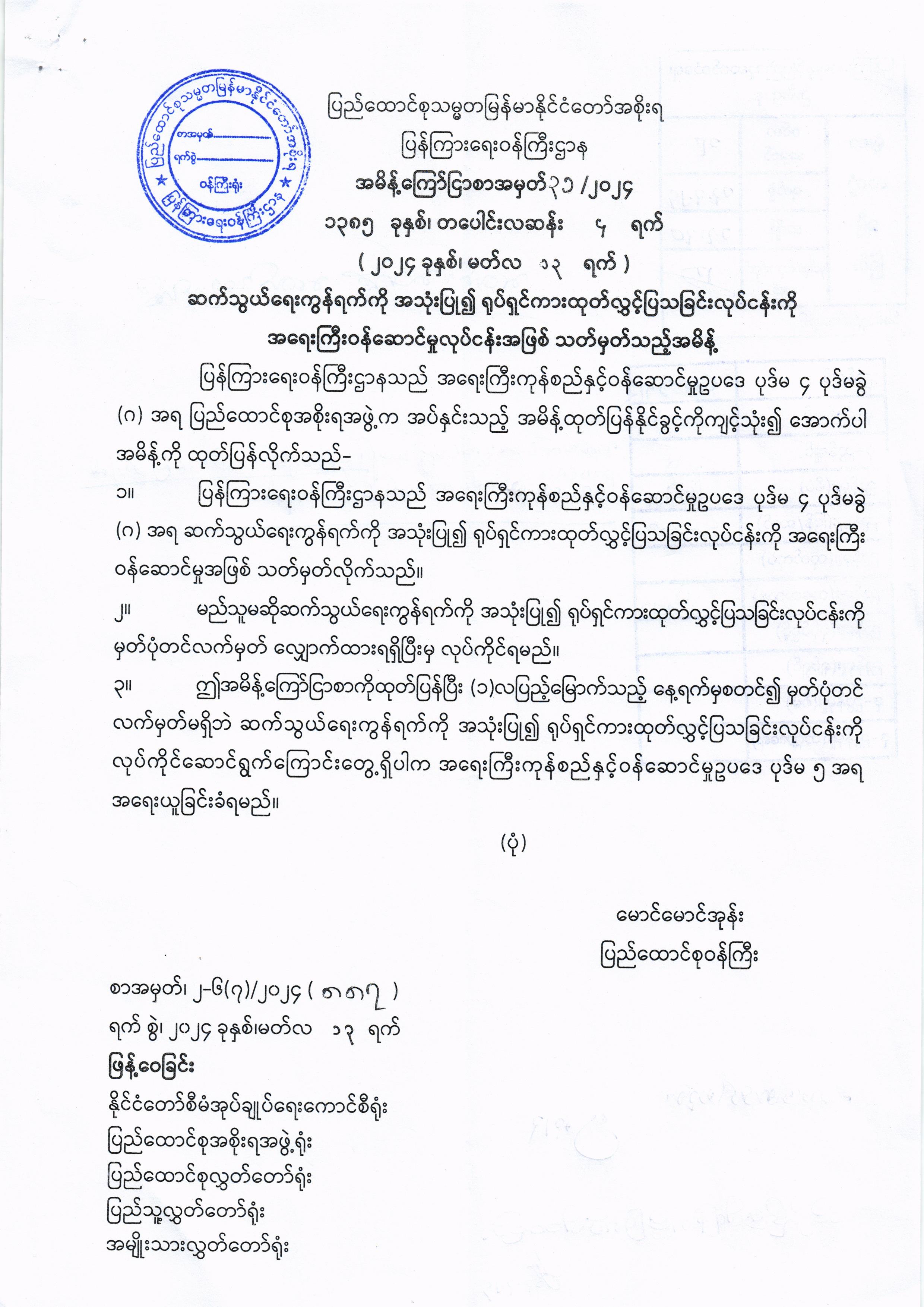 ဆက်သွယ်ရေးကွန်ရက်ကို အသုံးပြု၍ ရုပ်ရှင်ကားထုတ်လွှင့် ပြသခြင်းလုပ်ငန်းကို အရေးကြီး ဝန်ဆောင်မှုလုပ်ငန်းအဖြစ် သတ်မှတ်သည့်အမိန့် 03/15/2024