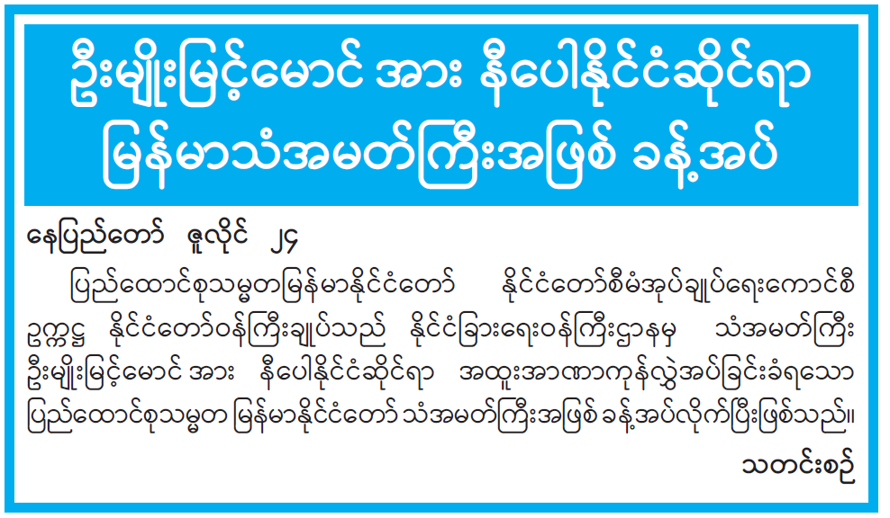 ဦးမျိုးမြင့်မောင်အား နီပေါနိုင်ငံဆိုင်ရာ မြန်မာသံအမတ်ကြီးအဖြစ် ခန့်အပ်