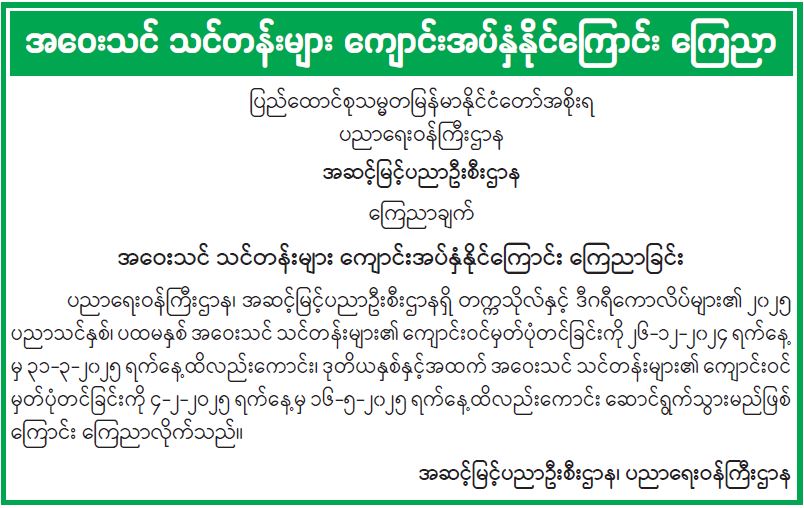 အဝေးသင် သင်တန်းများ ကျောင်းအပ်နှံနိုင်ကြောင်း ကြေညာ