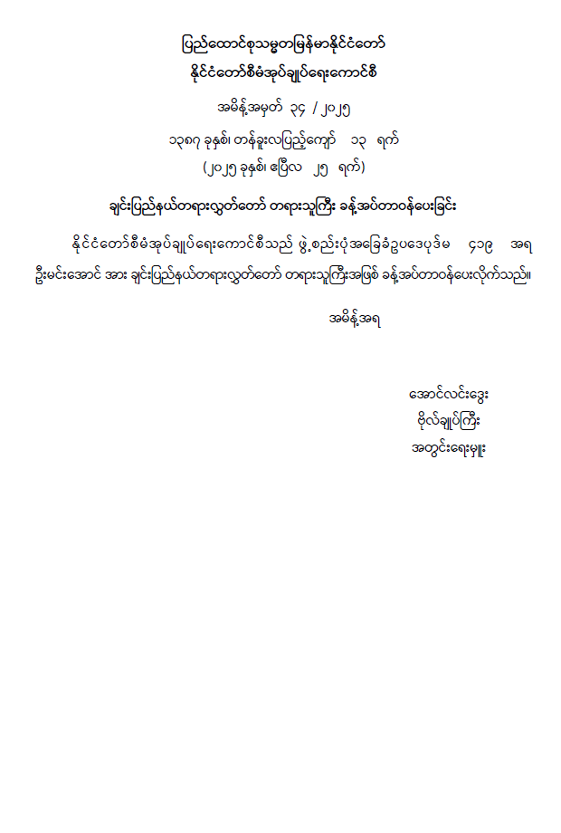 ချင်းပြည်နယ်တရားလွှတ်တော် တရားသူကြီး ခန့်အပ်တာဝန်ပေးခြင်း