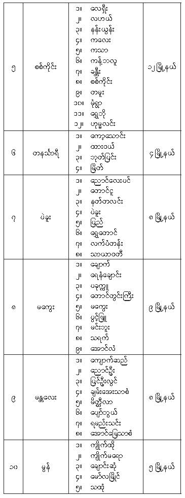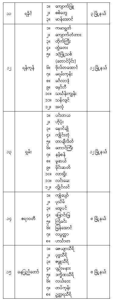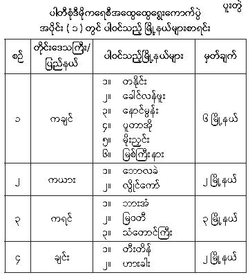 ပါတီစုံဒီမိုကရေစီအထွေထွေရွေးကောက်ပွဲ အပိုင်း (၁) တွင် ပါဝင်သည့် မြို့နယ်များ သတ်မှတ်ကြေညာခြင်း