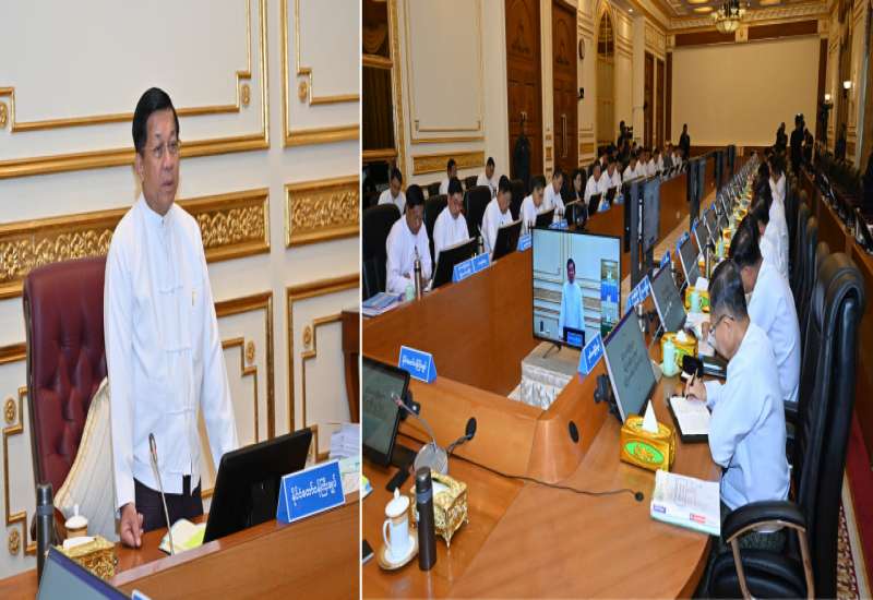 ပြည်ထောင်စုအစိုးရအဖွဲ့အစည်းအဝေး အမှတ်စဉ် (၇/၂၀၂၄) ကို ယနေ့နံနက်ပိုင်းတွင် နေပြည်တော်ရှိ နိုင်ငံတော်စီမံအုပ်ချုပ်ရေးကောင်စီဥက္ကဋ္ဌရုံး အစည်းအဝေးခန်းမ၌ ကျင်းပရာ နိုင်ငံတော်စီမံအုပ်ချုပ်ရေးကောင်စီဥက္ကဋ္ဌ နိုင်ငံတော်ဝန်ကြီးချုပ် ဗိုလ်ချုပ်မှူးကြီး မင်းအောင်လှိုင် တက်ရောက်အမှာစကားပြောကြားသည်။