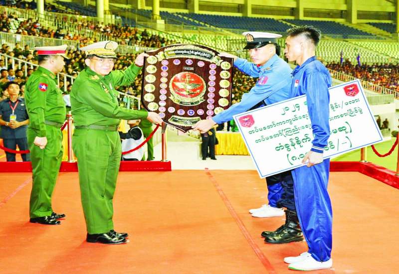 ၂၀၂၄ ခုနှစ်၊ တပ်မတော် (ကြည်း၊ ရေ၊ လေ) အားကစားပြိုင်ပွဲ ဆုချီးမြှင့်ပွဲ အခမ်းအနားကို ယနေ့ညနေပိုင်းတွင် နေပြည်တော်ရှိ ဇေယျာသီရိတပ်မတော်အားကစားကွင်း၌ ကျင်းပပြုလုပ်ရာ နိုင်ငံတော်စီမံအုပ်ချုပ်ရေးကောင်စီဥက္ကဋ္ဌ တပ်မတော်ကာကွယ်ရေးဦးစီးချုပ် ဗိုလ်ချုပ်မှူးကြီး မင်းအောင်လှိုင် တက်ရောက်အားပေးပြီး ဆုများပေးအပ်ချီးမြှင့်သည်။