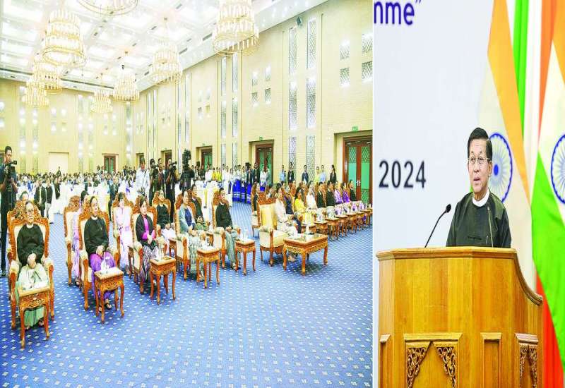 ၂၀၂၄ ခုနှစ်၊ အိန္ဒိယနည်းပညာနှင့် စီးပွားရေးပူးပေါင်းဆောင်ရွက်မှုအစီအစဉ်၏ နှစ် (၆၀) ပြည့် အထိမ်းအမှတ်အခမ်းအနားကို ယနေ့ညနေပိုင်းတွင် နေပြည်တော်ရှိမြန်မာအပြည်ပြည်ဆိုင်ရာကွန်ဗင်းရှင်းဗဟိုဌာန-၂ ၌ ကျင်းပပြုလုပ်ရာ နိုင်ငံတော်စီမံအုပ်ချုပ်ရေးကောင်စီဥက္ကဋ္ဌ နိုင်ငံတော်ဝန်ကြီးချုပ် ဗိုလ်ချုပ်မှူးကြီး မင်းအောင်လှိုင် တက်ရောက်အမှာစကားပြောကြားသည်။