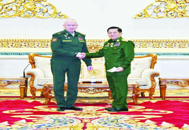 မြန်မာနိုင်ငံနှင့် ရုရှားဖက်ဒရေးရှင်းနိုင်ငံအကြား မဟာဗျူဟာမြောက် မိတ်ဖက်ဆက်ဆံရေးပိုမို အားကောင်းစေရန်အပါအဝင် စစ်ဘက်နှင့်စစ်ဘက်နည်းပညာ ပူးပေါင်းဆောင်ရွက်မှုမြှင့်တင်ရေး ကြိုးပမ်းမှုများအတွက် တပ်မတော်နှစ်ရပ်အကြား ဆုတံဆိပ်များ အပြန်အလှန်ပေးအပ်ခြင်းအခမ်းအနားကို ယနေ့နံနက်ပိုင်းတွင် နေပြည်တော်ရှိ ဇေယျာသီရိဗိမာန်ဧည့်ခန်းမဆောင်၌ ကျင်းပပြုလုပ်သည်။