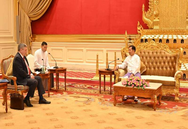 နိုင်ငံတော်စီမံအုပ်ချုပ်ရေးကောင်စီဥက္ကဋ္ဌ နိုင်ငံတော်ဝန်ကြီးချုပ် ဗိုလ်ချုပ်မှူးကြီး မင်းအောင်လှိုင်ထံ တရုတ်နိုင်ငံ၊ ယူနန်ပြည်နယ်၊ ဒုတိယပါတီအတွင်းရေးမှူးနှင့် ပြည်နယ်အုပ်ချုပ်ရေးမှူး H.E. Mr. Wang Yubo ဦးဆောင်သည့် ကိုယ်စားလှယ်အဖွဲ့သည် ယနေ့နံနက်ပိုင်းတွင် နေပြည်တော်ရှိ နိုင်ငံတော်စီမံအုပ်ချုပ်ရေးကောင်စီဥက္ကဋ္ဌရုံး၊ သံတမန်ဆောင်ခန်းမ၌ လာရောက်ဂါရဝပြုတွေ့ဆုံသည်။