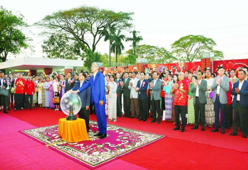(၂၀၂၄) ခုနှစ် ရွှေနဂါးတရုတ်နှစ်သစ်ကူးပွဲတော်အခမ်းအနားကို ယနေ့ညနေပိုင်းတွင် ရန်ကုန်မြို့ရှိ အမျိုးသားအားကစားပြိုင်ပွဲရုံ (၁) သုဝဏ္ဏ၌ ကျင်းပပြုလုပ်ရာ နိုင်ငံတော်စီမံအုပ်ချုပ်ရေးကောင်စီဥက္ကဋ္ဌ နိုင်ငံတော်ဝန်ကြီးချုပ် ဗိုလ်ချုပ်မှူးကြီး မင်းအောင်လှိုင်နှင့် ဇနီး ဒေါ်ကြူကြူလှတို့ တက်ရောက်ချီးမြှင့်သည်။