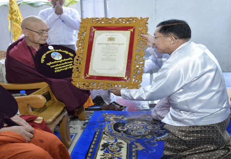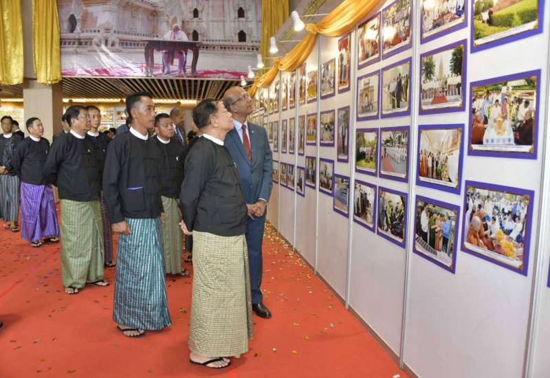 မြန်မာ-အိန္ဒိယအပြည်ပြည်ဆိုင်ရာ စီးပွားရေးလုပ်ငန်းရှင်များအသင်းချုပ်နှင့် မြန်မာ-အိန္ဒိယချစ်ကြည်ရေးနှင့် ဖွံ့ဖြိုးတိုးတက်ရေးအသင်းတို့မှ ကြီးမှူးကျင်းပသည့် မြန်မာ-အိန္ဒိယနှစ်နိုင်ငံချစ်ကြည်ရေးနှင့် သံတမန်ဆက်ဆံခြင်း(၇၅)နှစ်ပြည့်အထိမ်းအမှတ် အခမ်းအနားကို ယနေ့ညနေပိုင်းတွင် ရန်ကုန်တိုင်းဒေသကြီးရှိ အမျိုးသားကဇာတ်ရုံ၌ ကျင်းပပြုလုပ်ရာ နိုင်ငံတော်စီမံအုပ်ချုပ်ရေးကောင်စီဥက္ကဋ္ဌ နိုင်ငံတော်ဝန်ကြီးချုပ် ဗိုလ်ချုပ်မှူးကြီး မင်းအောင်လှိုင် တက်ရောက်ချီးမြှင့်သည်။