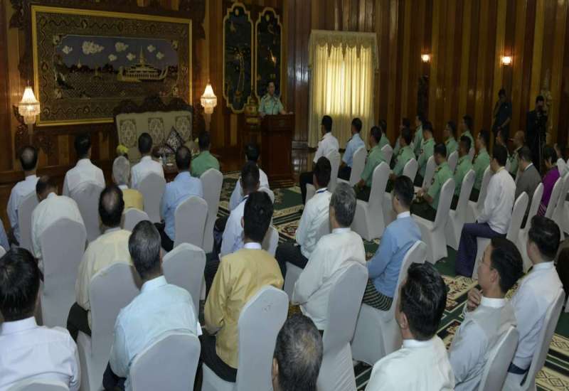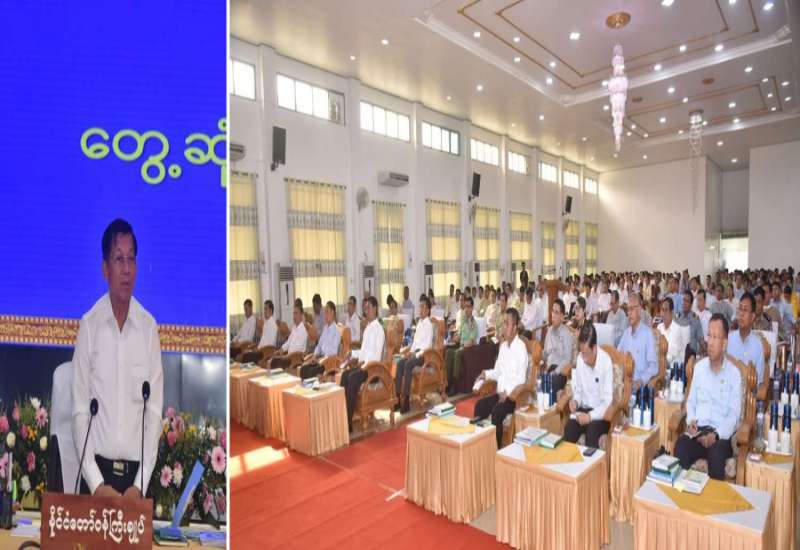 နိုင်ငံတော်စီမံအုပ်ချုပ်ရေးကောင်စီဥက္ကဋ္ဌ နိုင်ငံတော်ဝန်ကြီးချုပ် ဗိုလ်ချုပ်မှူးကြီး မင်းအောင်လှိုင်သည် ယနေ့နံနက်ပိုင်းတွင် ရှမ်းပြည်နယ်(အရှေ့ပိုင်း) ကျိုင်းတုံမြို့ရှိ ပြည်နယ်၊ ခရိုင်၊ မြို့နယ်အဆင့် ဌာနဆိုင်ရာတာဝန်ရှိသူများ၊ မြို့မိ၊ မြို့ဖများ၊ အသေးစား၊ အငယ်စားနှင့် အလတ်စား စီးပွားရေး (MSME)လုပ်ငန်းရှင်များအား ကျိုင်းတုံမြို့ မြို့တော်ခန်းမ၌ တွေ့ဆုံ၍ ဒေသဖွံ့ဖြိုးတိုးတက်ရေး ဆိုင်ရာများကို ဆွေးနွေးပြောကြားသည်။