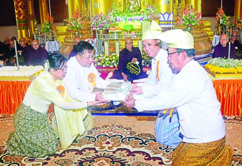 ရခိုင်ပြည်နယ် စစ်တွေမြို့ ကျက်သရေဆောင် လောကာနန္ဒာစေတီတော်မြတ်ကြီးအား ရတနာစိန်ဖူးတော်၊ ငှက်မြတ်နားတော် တင်လှူပူဇော်ပွဲနှင့် ဗုဒ္ဓါဘိသေက အနေကဇာတင် မဟာမင်္ဂလာအခမ်းအနားကို ယနေ့နံနက်ပိုင်းက ကျင်းပပြုလုပ်ရာ နိုင်ငံတော်သံဃမဟာနာယကအဖွဲ့၊ တွဲဖက်အကျိုးတော်ဆောင်၊ မင်းပြားမြို့ ပရိယတ္တိဓမ္မိကာရာမစာသင်တိုက် ပဓာနနာယက အဂ္ဂမဟာသဒ္ဓမ္မဇောတိကဓဇ၊ အဂ္ဂမဟာဂန္ထဝါစကပဏ္ဍိတ ဘဒ္ဒန္တဣန္ဒာစရိယ မင်းပြားဆရာတော်ကြီးအမှူးပြုသည့် ဆရာတော်၊ သံဃာတော်အရှင်သူမြတ်များ ကြွရောက်ချီးမြှင့်တော်မူကြသည်။