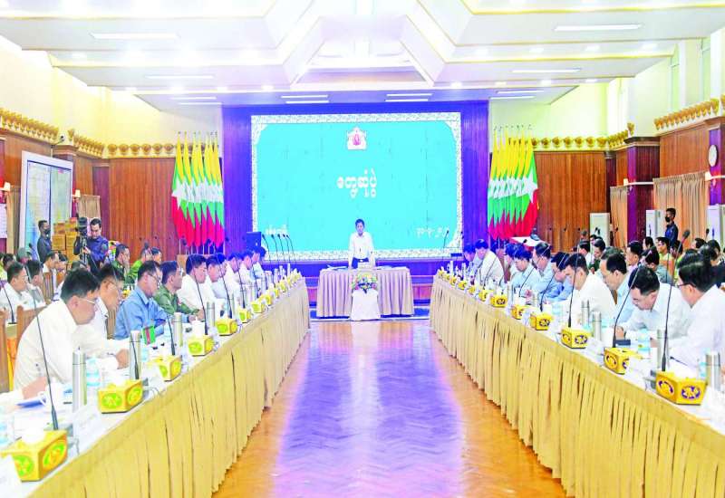 နိုင်ငံတော်စီမံအုပ်ချုပ်ရေးကောင်စီဥက္ကဋ္ဌ နိုင်ငံတော်ဝန်ကြီးချုပ် ဗိုလ်ချုပ်မှူးကြီး မင်းအောင်လှိုင်သည် ယနေ့မွန်းလွဲပိုင်းတွင် ရခိုင်ပြည်နယ်အစိုးရအဖွဲ့နှင့် ပြည်နယ်အဆင့် ဌာနဆိုင်ရာတာဝန်ရှိသူများအား ပြည်နယ်အစိုးရအဖွဲ့ရုံး အစည်းအဝေးခန်းမ၌ တွေ့ဆုံအမှာစကားပြောကြားသည်။