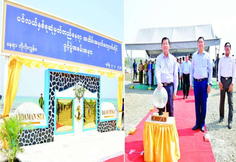 နိုင်ငံတော်စီမံအုပ်ချုပ်ရေးကောင်စီဥက္ကဋ္ဌ နိုင်ငံတော်ဝန်ကြီးချုပ် ဗိုလ်ချုပ်မှူးကြီးမင်းအောင်လှိုင်သည် ဇနီးဒေါ်ကြူကြူလှ၊ ကောင်စီတွဲဖက်အတွင်းရေးမှူး ဒုတိယဗိုလ်ချုပ်ကြီး ရဲဝင်းဦးနှင့်ဇနီး၊ ကောင်စီဝင်များ၊ ပြည်ထောင်စုဝန်ကြီးများလိုက်ပါ၍ ကိုကိုးကျွန်းမြို့နယ်ရှိ ကပ္ပလီပင်လယ်ပြင် (Andaman Sea)နှင့် ဘင်္ဂလားပင်လယ်အော်(Bay of Bengal) ပင်လယ်နှစ်ခုဆုံမှတ်တည်နေရာတွင် အောင်မြေအထိမ်းအမှတ် ကျောက်တိုင်စိုက်ထူခြင်းအခမ်းအနားသို့ ယနေ့နံနက်ပိုင်းတွင် တက်ရောက်ချီးမြှင့်သည်။