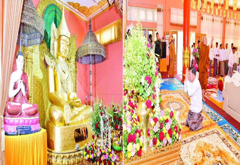 ရှမ်းပြည်နယ်(မြောက်ပိုင်း) လားရှိုးမြို့ရှိ သီရိမင်္ဂလာမန်ဆူရှမ်းကျောင်းတိုက်၌ နိုင်ငံတော်စီမံအုပ်ချုပ်ရေးကောင်စီဥက္ကဋ္ဌ နိုင်ငံတော်ဝန်ကြီးချုပ် ဗိုလ်ချုပ်မှူးကြီး မင်းအောင်လှိုင် အမှူးပြုသည့် စေတနာရှင်၊ အလှူရှင်များ စုပေါင်းလှူဒါန်းထားသည့် သီရိမင်္ဂလာဓမ္မရတနာ သုံးထပ်ကျောင်းဆောင်သစ်ဖွင့်ပွဲနှင့် ယင်းကျောင်းဆောင်တော်အထွတ်၌ တည်ထားပူဇော်အပ်သည့် စူဠာမုနိစေတီတော်မြတ်အား ရွှေထီးတော်၊ ငှက်မြတ်နားတော်၊ ရတနာစိန်ဖူးတော်တင်လှူပူဇော်ပွဲ မဟာမင်္ဂလာအခမ်းအနားကို ယနေ့နံနက်ပိုင်းတွင် အဆိုပါကျောင်းတိုက်၌ ကျင်းပပြုလုပ်ရာ သီရီမင်္ဂလာ မန်ဆူရှမ်းကျောင်းတိုက်ဆရာတော် အဂ္ဂမဟာဂန္ထဝါစကပဏ္ဍိတ အဂ္ဂမဟာကမ္မဌာနာစရိယ အဂ္ဂမဟာသဒ္ဓမ္မဇောတိကဓဇ ဒေါက်တာဘဒ္ဒန္တပုညနန္ဒ အမှူးပြုသည့် ဆရာတော်၊ သံဃာတော်များ ကြွရောက်ချီးမြှင့်တော်မူကြပြီး နိုင်ငံတော်စီမံအုပ်ချုပ်ရေးကောင်စီဥက္ကဋ္ဌ နိုင်ငံတော်ဝန်ကြီးချုပ် ဗိုလ်ချုပ်မှူးကြီး မင်းအောင်လှိုင်နှင့်ဇနီး ဒေါ်ကြူကြူလှ၊ မိသားစုဝင်များ၊ ခရီးစဉ်တွင် လိုက်ပါလာသည့် အဖွဲ့ဝင်များ၊ ဒေသခံပြည်သူများ တက်ရောက်ကြသည်။