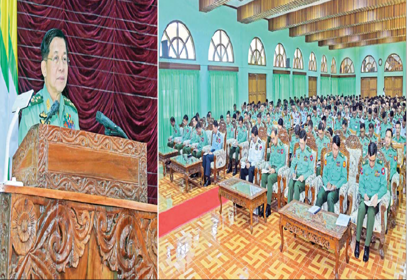 နိုင်ငံတော်စီမံအုပ်ချုပ်ရေးကောင်စီဥက္ကဋ္ဌ တပ်မတော်ကာကွယ်ရေးဦးစီးချုပ် ဗိုလ်ချုပ်မှူးကြီး မင်းအောင်လှိုင်သည် ယနေ့မွန်းလွဲပိုင်းတွင် အနောက်ပိုင်းတိုင်းစစ်ဌာနချုပ်၊ စစ်တွေတပ်နယ်ရှိ အရာရှိ၊ စစ်သည်၊ မိသားစုများအား နယ်မြေခံတပ်နယ်ခန်းမ၌ သွားရောက်တွေ့ဆုံ အမှာစကားပြောကြားသည်။