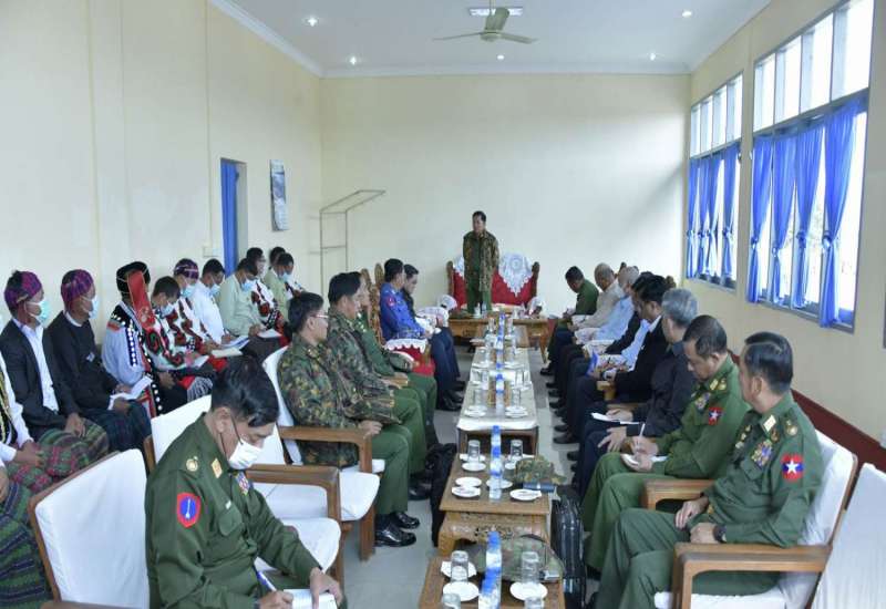 နိုင်ငံတော်စီမံအုပ်ချုပ်ရေးကောင်စီဥက္ကဋ္ဌ တပ်မတော်ကာကွယ်ရေးဦးစီးချုပ် ဗိုလ်ချုပ်မှူးကြီး မင်းအောင်လှိုင်သည် ဇနီးဒေါ်ကြူကြူလှ၊ ကာကွယ်ရေးဦးစီးချုပ် (ရေ) ဗိုလ်ချုပ်ကြီး မိုးအောင်နှင့်ဇနီး၊ ကာကွယ်ရေးဦးစီးချုပ်(လေ) ဗိုလ်ချုပ်ကြီး ထွန်းအောင်နှင့် ဇနီး၊ ကာကွယ်ရေးဦးစီးချုပ်ရုံးမှ တပ်မတော်အရာရှိ ကြီးများနှင့်ဇနီးများ၊ မြောက်ပိုင်းတိုင်းစစ်ဌာနချုပ် တိုင်းမှူး ဗိုလ်ချုပ် ကိုကိုမောင်နှင့် တာဝန်ရှိသူများလိုက်ပါ၍ ယနေ့နံနက်ပိုင်းတွင် မြောက်ပိုင်းတိုင်းစစ်ဌာနချုပ် မြစ်ကြီးနားတပ်နယ်မှ အရာရှိ၊ စစ်သည်၊ မိသားစုများအား ဗလမင်းထင်ခန်းမ၌ တွေ့ဆုံအမှာစကားပြောကြားသည်။