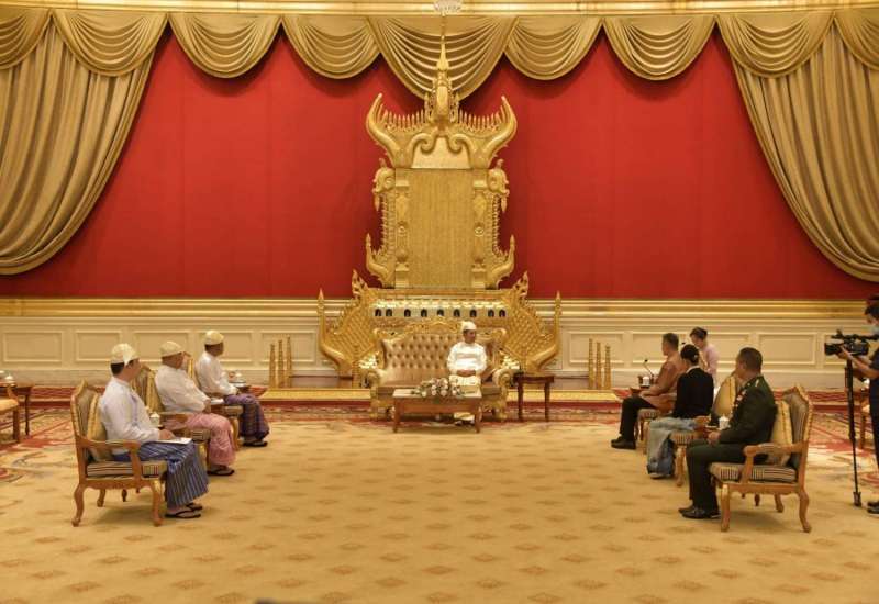 နိုင်ငံတော်စီမံအုပ်ချုပ်ရေးကောင်စီဥက္ကဋ္ဌ နိုင်ငံတော်ဝန်ကြီးချုပ် ဗိုလ်ချုပ်မှူးကြီး မင်းအောင်လှိုင်ထံ ရုရှားဖက်ဒရေးရှင်းနိုင်ငံ၊ စီးပွားရေးဖွံ့ဖြိုးတိုးတက်မှုဝန်ကြီးဌာနဝန်ကြီး H.E. Mr. Maxim RESHETNIKOV က ယနေ့နေ့လယ်ပိုင်းတွင် နေပြည်တော်ရှိ နိုင်ငံတော်စီမံအုပ်ချုပ်ရေးကောင်စီဥက္ကဋ္ဌရုံး သံတမန်ဆောင်ဧည့်ခန်းမ၌ လာရောက် ဂါရဝပြုတွေ့ဆုံသည်။