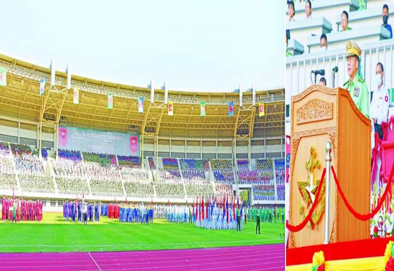 ယနေ့ကျင်းပသည့် တပ်မတော် (ကြည်း၊ ရေ၊ လေ) အားကစားပြိုင်ပွဲသည် နိုင်ငံတော် ကချမှတ်ထားသည့် “တစ်မျိုးသားလုံးကျန်းမာ ကြံ့ခိုင်ရေးနှင့် ပညာရည်မြင့်မားရေး” ဟူသည့် လူမှုရေးဦးတည်ချက်ပါ ပြဋ္ဌာန်းချက်ကို တပ်မတော်အနေဖြင့် အကောင်အထည်ဖော် ဆောင်ရွက်ခြင်းလည်းဖြစ်ကြောင်း၊ နိုင်ငံတော်နှင့် တပ်မတော်အပိုင်းရှိ တာဝန်ရှိသူများက လိုအပ်သည့်ဖြည့်ဆည်းမှုများကို စီမံဆောင်ရွက်ပေးသွားမည် ဖြစ်သကဲ့သို့ တပ်မတော်သား အားကစားသမားများအနေဖြင့်လည်း နိုင်ငံတော်နှင့်တပ်မတော်အတွက် အားကစားသမားကောင်းစိတ်ဓာတ်အပြင် အဖွဲ့အစည်းအချင်းချင်း စည်းလုံးညီညွတ်စွာ ပေါင်းစည်းဆောင်ရွက်တတ်ခြင်း စိတ်ဓာတ်များကို မွေးမြူသွားရမည်ဖြစ်ကြောင်းဖြင့် နိုင်ငံတော်စီမံအုပ်ချုပ်ရေးကောင်စီဥက္ကဋ္ဌ တပ်မတော်ကာကွယ်ရေးဦးစီးချုပ် ဗိုလ်ချုပ်မှူးကြီး မင်းအောင်လှိုင်က ယနေ့ညနေပိုင်းတွင် နေပြည်တော်ရှိ ဇေယျာသီရိတပ်မတော်အားကစားကွင်း၌ ကျင်းပပြုလုပ်သည့် ၂၀၂၂ ခုနှစ်၊ တပ်မတော် (ကြည်း၊ ရေ၊ လေ) အားကစားပြိုင်ပွဲဖွင့်ပွဲ အခမ်းအနား၌ အဖွင့်မိန့်ခွန်းပြောကြားရာတွင် ထည့်သွင်းပြောကြားသည်။