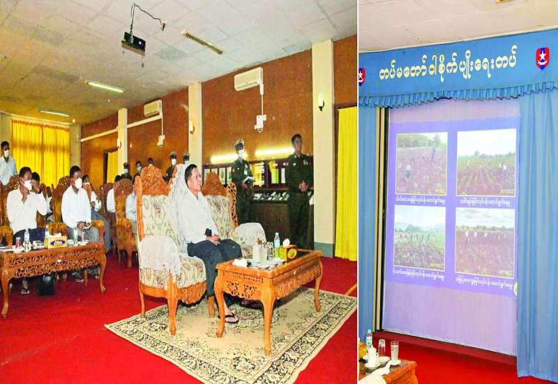 နိုင်ငံတော်စီမံအုပ်ချုပ်ရေးကောင်စီဥက္ကဋ္ဌ တပ်မတော်ကာကွယ်ရေးဦးစီးချုပ် ဗိုလ်ချုပ်မှူးကြီး မင်းအောင်လှိုင် သည် ယနေ့နံနက်ပိုင်းတွင် ညှိနှိုင်းကွပ်ကဲရေးမှူး (ကြည်း၊ ရေ၊ လေ)ဗိုလ်ချုပ်ကြီး မောင်မောင်အေးနှင့် တပ်မတော်အရာရှိကြီးများ၊ မကွေးတိုင်းဒေသကြီး ဝန်ကြီးချုပ် ဦးတင့်လွင်၊ အလယ်ပိုင်းတိုင်းစစ်ဌာနချုပ်တိုင်းမှူး ဗိုလ်ချုပ်ကိုကိုဦးနှင့် တာဝန်ရှိသူများလိုက်ပါ၍ ယနေ့နံနက်ပိုင်းတွင် တပ်မတော်ဝါစိုက်ပျိုးရေးတပ်(ပွင့်ဖြူ)သို့ သွားရောက်ကြည့်ရှုစစ်ဆေးသည်။