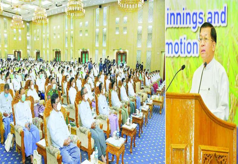 မြန်မာနိုင်ငံ၏ ဆန်စပါးကဏ္ဍဖွံ့ဖြိုးတိုးတက်ရေးအတွက် ဆက်လက်ဆောင်ရွက်သင့်သည့်လုပ်ငန်းစဉ်များ၊ ကြုံတွေ့ရသည့်အခက်အခဲများနှင့် ဆန်စပါးကဏ္ဍ၏ အနာဂတ်ဦးတည်လားရာများကို လေ့လာသုံးသပ်ပြီး အမျိုးသားပို့ကုန်မဟာဗျူဟာနှင့်အညီ ဆန်စပါး စိုက်ပျိုး၊ ထုတ်လုပ်၊ ကြိတ်ခွဲ၊ သိုလှောင်၊ တင်ပို့ရောင်းချခြင်း  တန်ဖိုးကွင်းဆက်တစ်လျှောက် ဆောင်ရွက်ရမည့်လုပ်ငန်းများ၊ ပြုပြင်ပြောင်းလဲတပ်ဆင်ရမည့် အစီအစဉ်များ၊ အစိုးရနှင့် ပုဂ္ဂလိကကဏ္ဍများမှ  ဆောင်ရွက်ရမည့် လုပ်ငန်းအစီအစဉ်များကို ဆွေးနွေးဖော်ထုတ်ရန် ရည်ရွယ်၍ “နိုင်ငံ့စီပွားမြှင့်တင်ဖို့၊ ဆန်စပါးဖြင့်ကြိုးပမ်းစို့” ဟူသည့် ခေါင်းစဉ်ဖြင့် ကျင်းပပြုလုပ်သည့် မြန်မာ့ဆန်စပါးညီလာခံ -၂၀၂၂ (Myanmar Rice Conference – 2022) ဖွင့်ပွဲအခမ်းအနားကို ယနေ့နံနက်ပိုင်းတွင် နေပြည်တော်ရှိ မြန်မာအပြည်ပြည်ဆိုင်ရာ ကွန်ဗင်းရှင်း (ဗဟိုဌာန-၂)၌ ကျင်းပပြုလုပ်ရာ နိုင်ငံတော်စီမံအုပ်ချုပ်ရေးကောင်စီဥက္ကဋ္ဌ နိုင်ငံတော်ဝန်ကြီးချုပ် ဗိုလ်ချုပ်မှူးကြီးမင်းအောင်လှိုင် တက်ရောက်အမှာစကား ပြောကြားသည်။