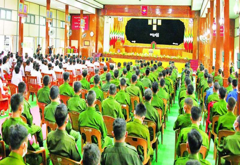 နိုင်ငံတော်စီမံအုပ်ချုပ်ရေးကောင်စီဥက္ကဋ္ဌ တပ်မတော်ကာကွယ်ရေးဦးစီးချုပ် ဗိုလ်ချုပ်မှူးကြီး မင်းအောင်လှိုင်သည် ယနေ့မွန်းလွဲပိုင်းတွင် ပြည်တပ်နယ်နှင့် ပန်းတောင်းတပ်နယ်တို့မှ အရာရှိ၊ စစ်သည်မိသားစုဝင်များအား ပြည်တပ်နယ်ရှိနဝဒေးခန်းမ၌ တွေ့ဆုံအမှာစကား ပြောကြားသည်။