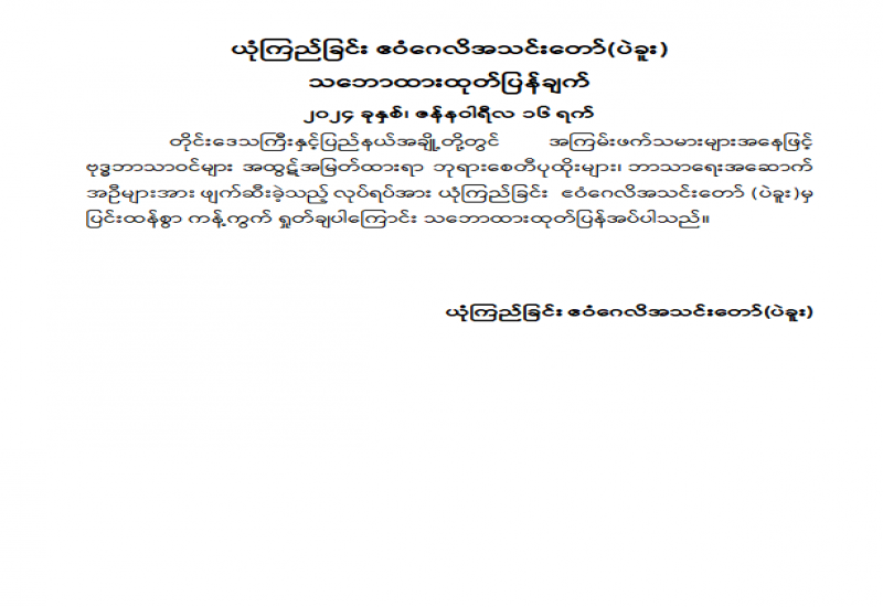 ဗုဒ္ဓဘာသာဝင်များ အထွတ်အမြတ်ထားရာ ဘုရား၊ စေတီ၊ ပုထိုးများအပါအဝင် အခြားဘာသာရေးဆိုင်ရာ အဆောက်အဦများ၊ ဘုရားရှိခိုးကျောင်းများကို အကြမ်းဖက် သောင်းကျန်းသူများက ဗုံးများ ပစ်ချခြင်း၊ လက်နက်ကြီးများဖြင့် ပစ်ခတ်ခြင်း၊ ဖြိုချဖျက်ဆီးခြင်း များအပါအဝင် အခြားအကြမ်းဖက်တိုက်ခိုက်မှုပေါင်းစုံကို ပြုလုပ်လျက်ရှိသဖြင့် မြန်မာနိုင်ငံ အားကစားမီဒီယာများအဖွဲ့ချုပ်က လုံးဝလက်မခံနိုင်ပါကြောင်းနှင့် ပြင်းထန်စွာကန့်ကွက် ရှုတ်ချပါကြောင်း သဘောထား ထုတ်ပြန်ကြေညာအပ်ပါသည်။