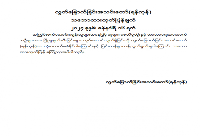 အကြမ်းဖက်သောင်းကျန်းသူများအနေဖြင့် ဘုရား၊ စေတီပုထိုးနှင့် ဘာသာရေးအဆောက် အဦများအား ဖြိုချဖျက်ဆီးခြင်းများ လုပ်ဆောင်လျက်ရှိခြင်းကို လွတ်မြောက်ခြင်း အသင်းတော် (ရန်ကုန်)က လုံးဝလက်မခံနိုင်ပါကြောင်းနှင့် ပြင်းထန်စွာကန့်ကွက်ရှုတ်ချပါကြောင်း သဘော ထားထုတ်ပြန် ကြေညာအပ်ပါသည်။