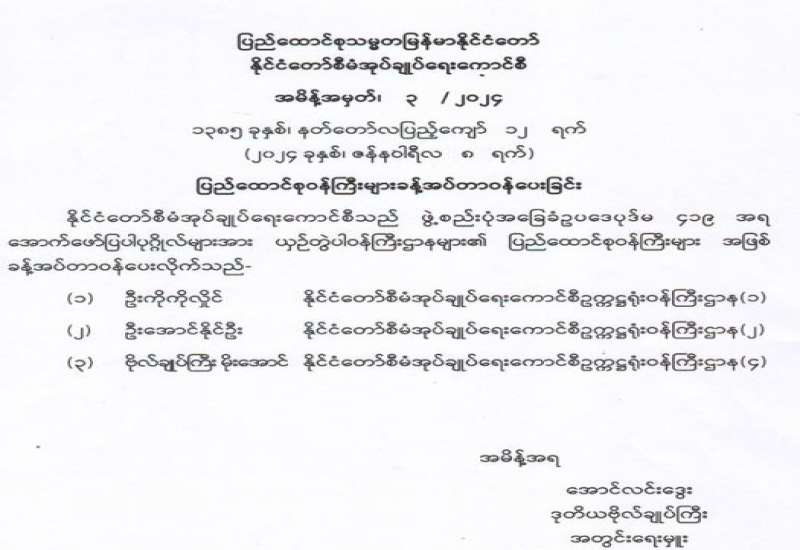 ပြည်ထောင်စုဝန်ကြီးများခန့်အပ်တာဝန်ပေးခြင်း