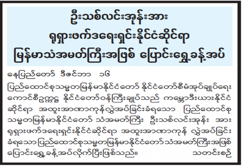 ဦးသစ်လင်းအုန်းအား ရုရှားဖက်ဒရေးရှင်းနိုင်ငံဆိုင်ရာ မြန်မာသံအမတ်ကြီးအဖြစ် ပြောင်းရွှေ့ ခန့်အပ်