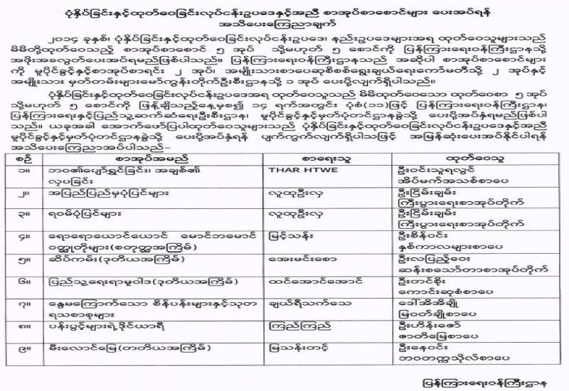၁။ ၂၀၁၄ ခုနှစ် ပုံနှိပ်ခြင်းနှင့်ထုတ်ဝေခြင်းလုပ်ငန်းဥပဒေတွင် ထုတ်ဝေစာဆိုသည်မှာ လက်ရေးစာ၊ ပုံနှိပ်စာ၊ အီလက်ထရောနစ်နှင့် အခြားနည်းပညာတစ်ရပ်ရပ်ဖြင့် ဖန်တီး၍ ထုတ်ဝေလိုက်သည့် စာတို့ အပြင် ယင်းတို့နှင့် အမျိုးအစားတူသည်ဖြစ်စေ၊ မတူသည်ဖြစ်စေ ထင်ရှားမြင်သာသော ပုံသဏ္ဌာန် ရှိသည့်အရာ သို့မဟုတ် ပုံအားဖြင့်သော်လည်းကောင်း၊ သဏ္ဌာန်အားဖြင့်သော်လည်းကောင်း၊ အခြား နည်းလမ်းအားဖြင့်သော်လည်းကောင်း စကားလုံးများကိုဖြစ်စေ၊ အတွေးအခေါ်များကိုဖြစ်စေ သိရှိစေနိုင် သည့်အရာများနှင့်