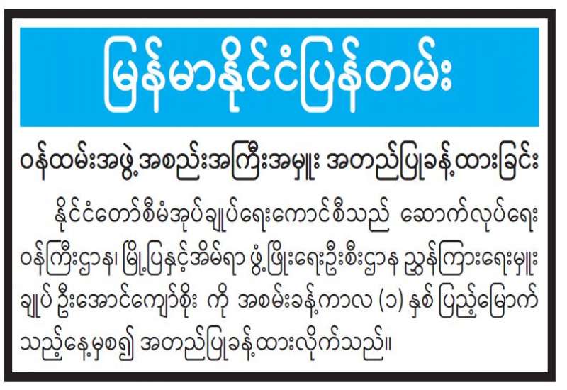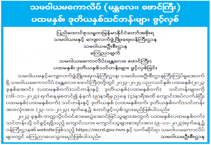 အီလက်ထရောနစ်နည်းပညာကို အသုံးပြု၍ Digital Platform ဖြစ်သော Mobile Application နှင့် Website များတွင် E-Book ထုတ်ဝေစာများ ဆောင်ရွက်နေမှုနှင့်ပတ်သက်၍ အသိပေးကြေညာချက်