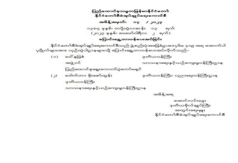 နိုင်ငံရေးပါတီများမှတ်ပုံတင်ခြင်း နည်းဥပဒေများကို ထုတ်ပြန်ကြေညာခြင်း