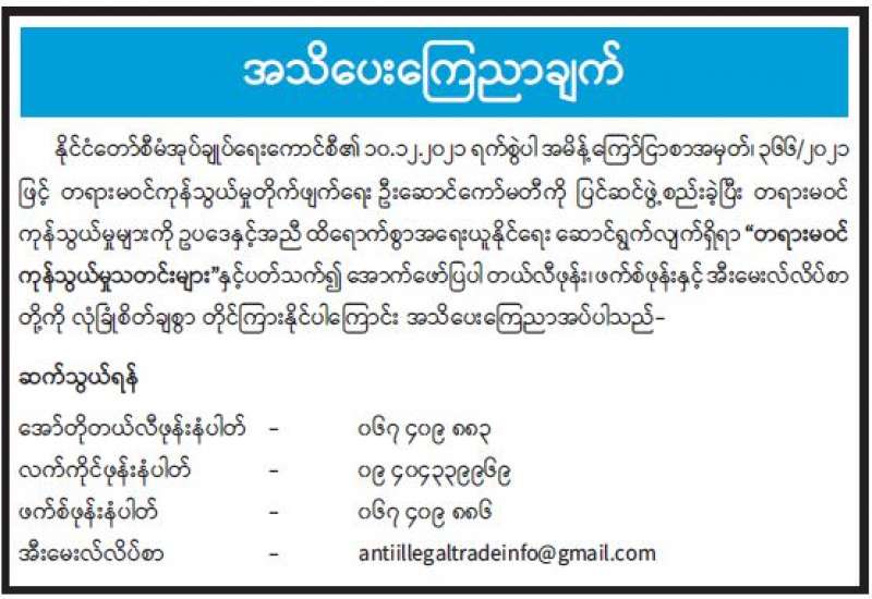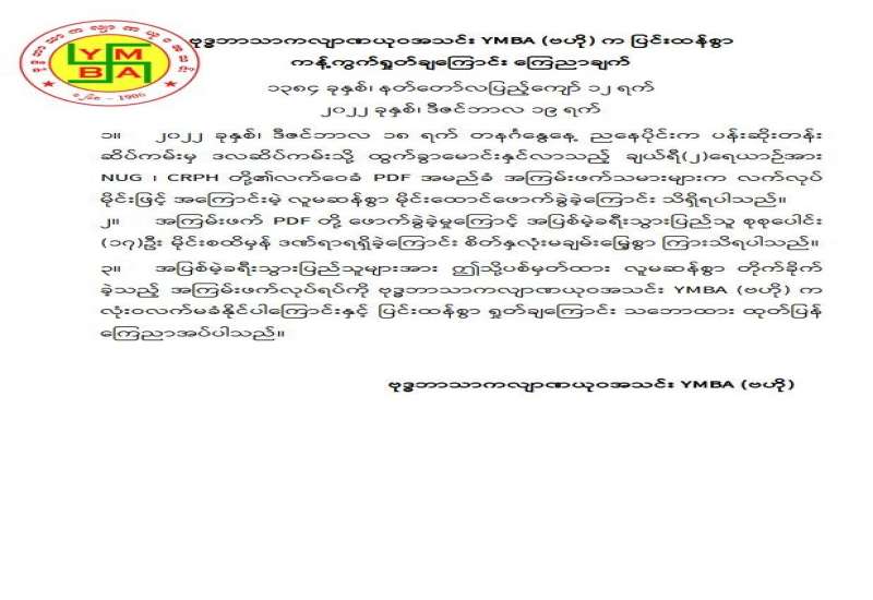 ဗုဒ္ဓဘာသာကလျာဏယုဝအသင်း YMBA (ဗဟို)က ပြင်းထန်စွာကန့်ကွက်ရှုတ်ချကြောင်း ကြေညာချက် ၂၀၂၂ ခုနှစ် ဒီဇင်ဘာ ၁၉