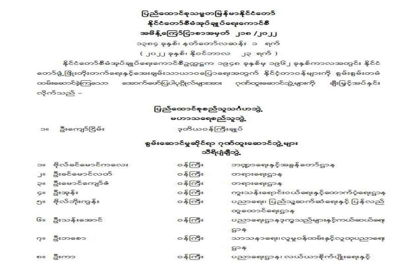 နည်းပညာတက္ကသိုလ်များနှင့် ကွန်ပျူတာတက္ကသိုလ်များတွင် ပထမနှစ်(ဒုတိယနှစ်ဝက်)နှင့် ဒုတိယနှစ်မှ ပါရဂူဘွဲ့သင်တန်းများ၏ ကျောင်းအပ်လက်ခံခြင်းကို နိုဝင်ဘာ ၃၀ ရက်အထိ လက်ခံဆောင်ရွက်ပေးမည်