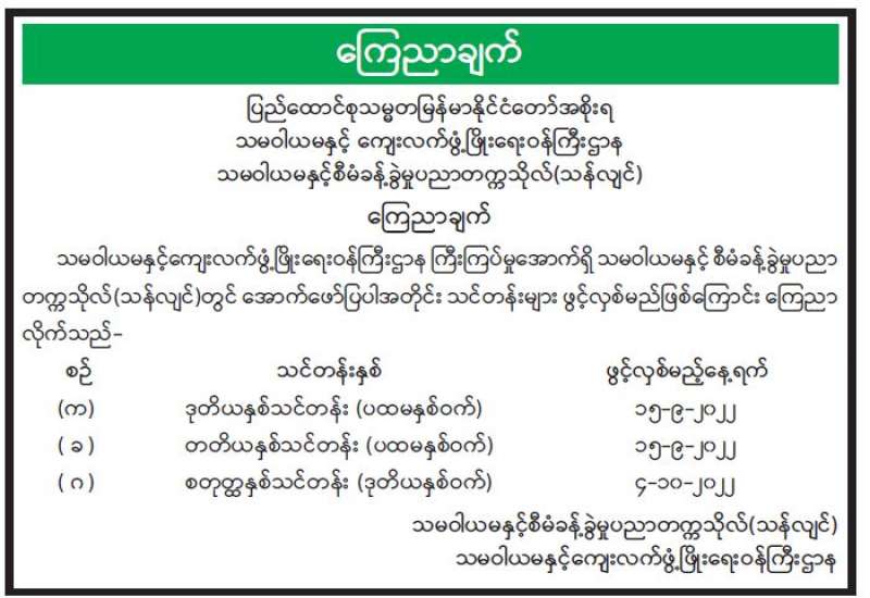 ၁။ ပို့ဆောင်ရေးနှင့် ဆက်သွယ်ရေးဝန်ကြီးဌာန၊ ဆက်သွယ်ရေးညွှန်ကြားမှုဦးစီးဌာန၏ စိစစ်ချက်များအရ SIM Card အသုံးပြုသူအချို့သည် အမည်၊ နိုင်ငံသားစိစစ်ရေးကတ်ပြားအမှတ် စသည့်အချက်အလက်များကို မှန်ကန်စွာဖြည့်စွက်ခြင်းမရှိဘဲ အသုံးပြုလျက်ရှိနေကြသည်ကို တွေ့ရှိနေရပါသည်။
