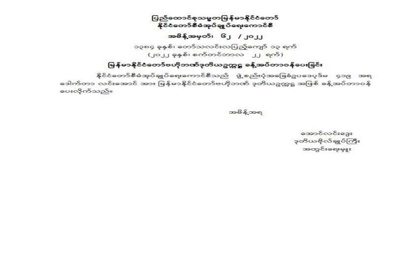 ထုတ်ဝေခြင်းလုပ်ငန်း အသိအမှတ်ပြုလက်မှတ် ရုပ်သိမ်းကြောင်း အသိပေးကြေညာချက်