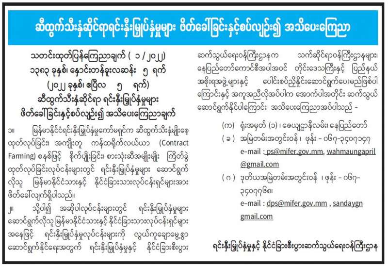 ပုံနှိပ်ခြင်းလုပ်ငန်း၊ ထုတ်ဝေခြင်းလုပ်ငန်းနှင့် သတင်းအေဂျင်စီလုပ်ငန်းလုပ်ကိုင်သူများ လုပ်ငန်းအသိအမှတ်ပြုလက်မှတ် အသစ်လဲလှယ်ရန် အသိပေးကြေညာခြင်း
