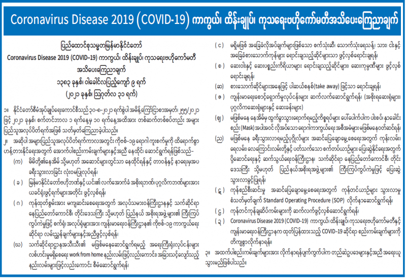 Coronavirus Disease 2019 (COVID-19) ကာကွယ်၊ ထိန်းချုပ်၊ ကုသရေးဗဟိုကော်မတီ အသိပေးကြေညာချက်