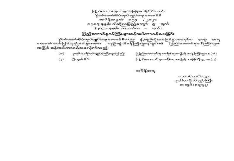 ကိုဗစ်-၁၉ ရောဂါ ကူးစက်ပြန့်ပွားမှုကို ပိုမိုထိရောက်စွာ ကာကွယ်၊ ထိန်းချုပ်၊ ကုသနိုင်ရေးအတွက် အများပြည်သူအလုပ်ပိတ်ရက် တိုးမြှင့်သတ်မှတ်ခြင်း