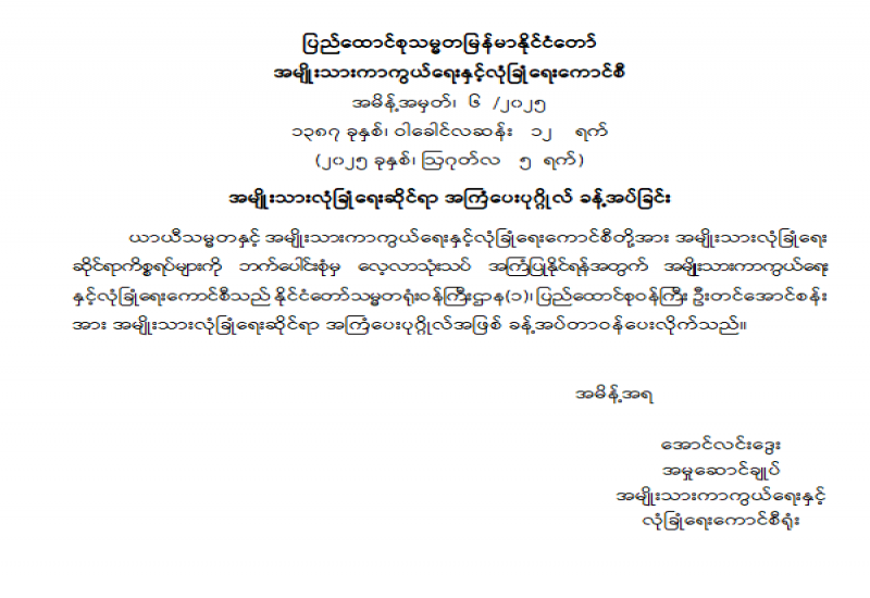 ဇိုမီးအမျိုးသားပါတီ (Zomi National Party) ကို နိုင်ငံရေးပါတီအဖြစ် မှတ်ပုံတင်ခွင့်ပြုခြင်း