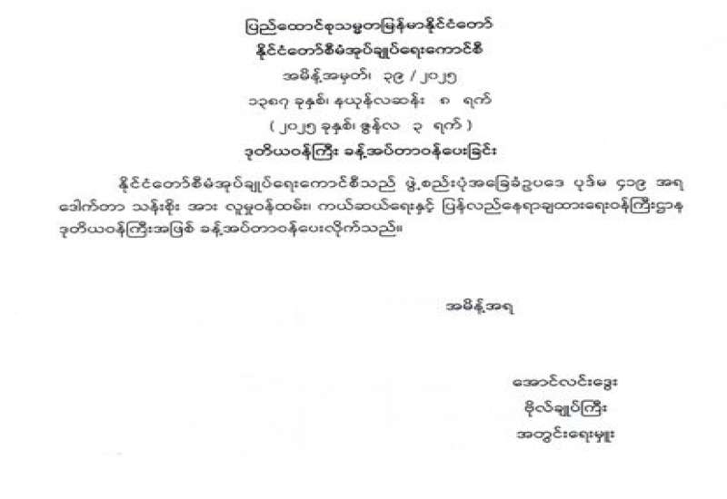 အမြဲတမ်းအတွင်းဝန်/ညွှန်ကြားရေးမှူးချုပ်အဖြစ် တာဝန်ပေးအပ်ခြင်း