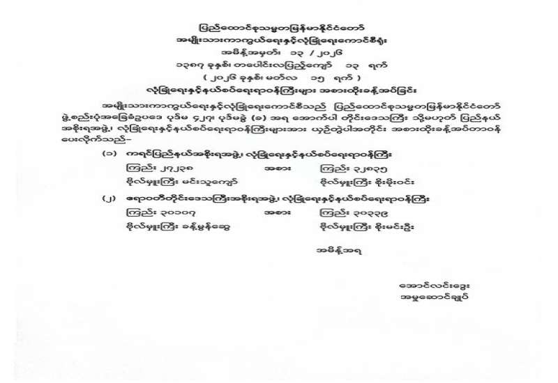 လုံခြုံရေးနှင့်နယ်စပ်ရေးရာဝန်ကြီးများ အစားထိုးခန့်အပ်ခြင်း