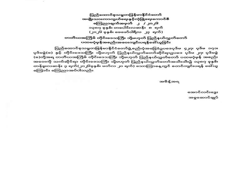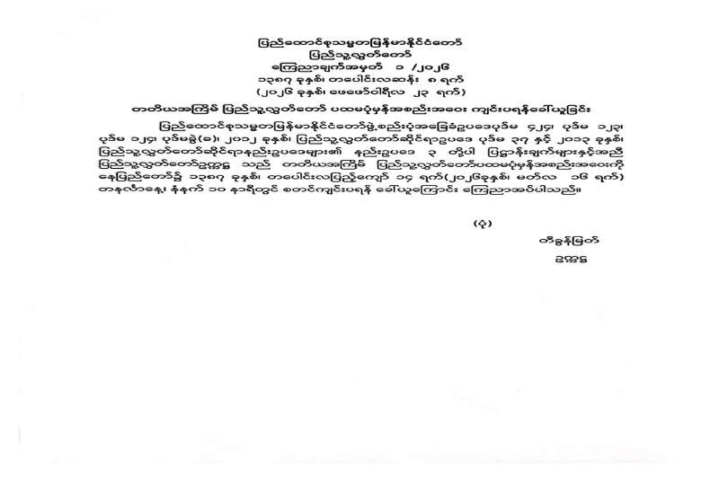 တတိယအကြိမ် တိုင်းဒေသကြီး သို့မဟုတ် ပြည်နယ်လွှတ်တော် ပထမပုံမှန်အစည်းအဝေးကျင်းပရန်ခေါ်ယူခြင်း